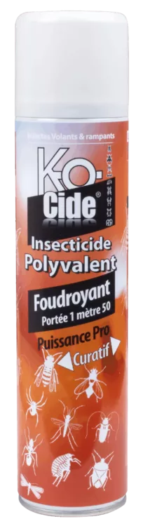HTK-OCIDE FOUDROYANT POLYVALENT élimine par son effet choc les insectes volants et rampants. Il s’utilise en traitement de choc, ou en traitement préventif sur les lieux de passages des